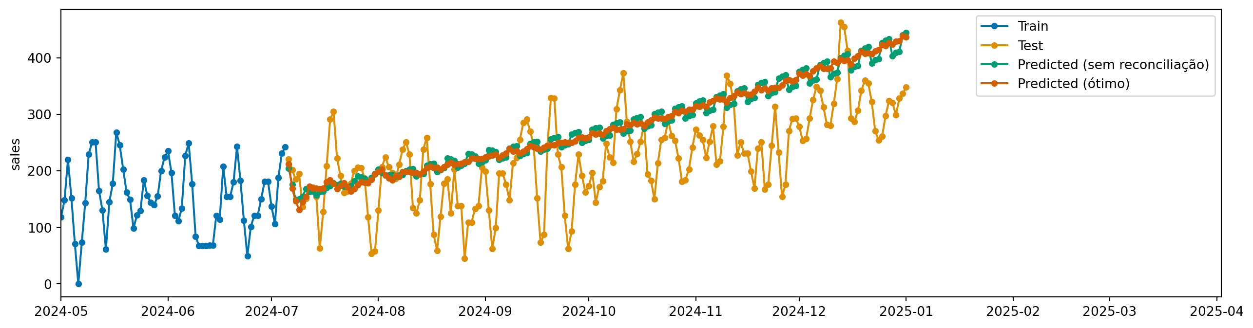 labels=["Train", "Test", "Predicted (sem reconciliação)", "Predicted (ótimo)"],